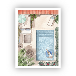 Kunstprint van origineel aquarel schilderij - Sunday dreaming (Poolside series)